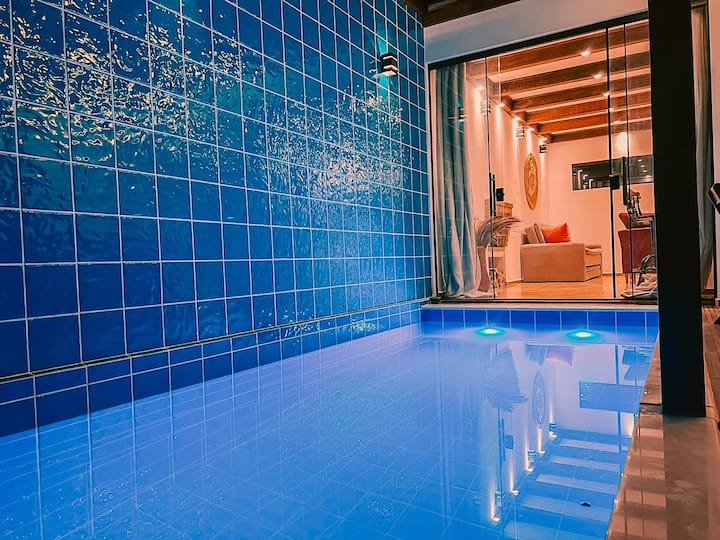 Este é um dos poucos lugares na região com piscina.