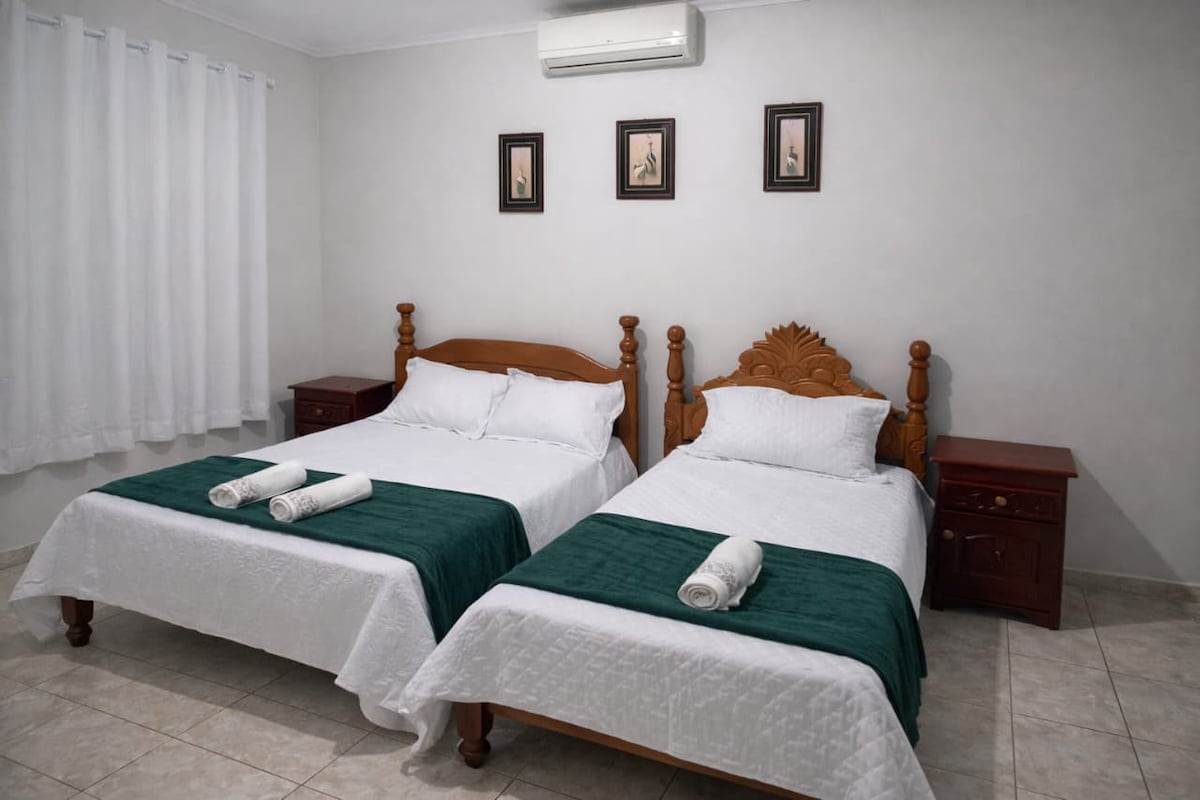 Abrace a simplicidade neste lugar tranquilo e bem-localizado. Apartamento contendo uma suite com cama de casal e um quarto com bicama de solteiro. Tendo a possibilidade de adicionar colchão extra.