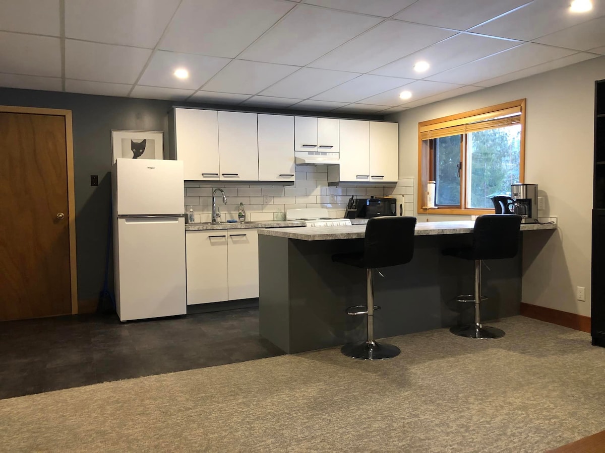 Suíte de porão iluminada e espaçosa com todas as comodidades para uma estadia maravilhosa! 1 QUARTO com cama queen size + estúdio privativo com 2 camas de solteiro. Desfrute de uma cozinha totalmente equipada, pátio e mergulhe na banheira de hidromassagem compartilhada enquanto desfruta da natureza e dos sons do riacho. Entusiastas do ar livre, ciclistas, esquiadores e amantes da natureza vão adorar este lugar. Trilhas de ciclismo e caminhadas à sua porta, a 5 minutos de carro de Rossland, a 2 minutos do Red Mountain Resort e a 2 minutos do Black Jack XC Ski Club. Mergulho frio de verão!
