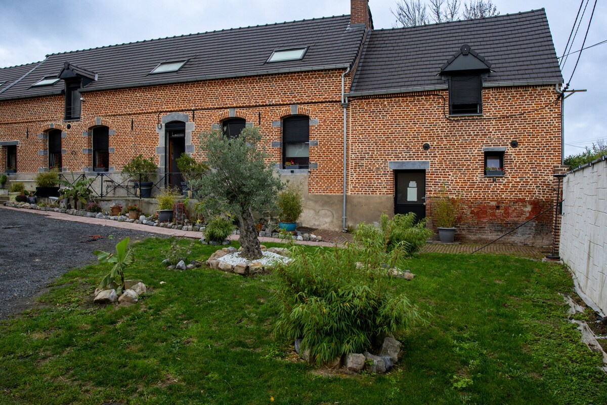 Venha relaxar nesta acomodação tranquila e elegante, localizada em uma antiga fazenda-brasserie que remonta a 1778, completamente renovada com cuidado. 📍 Ótima localização: • A 10 min de Valenciennes e Quesnoy (local de refresco) • 20 min de Cambrai • A 10 min de Solesmes 🏡 O espaço: Reformado, é composto por uma área de cozinha-estadia acolhedora e um quarto equipado com uma cama de solteiro 90x190. Casa de banho com chuveiro TV de tela plana de 80 cm. 🚗 Estacionamento: Estacionamento privado gratuito