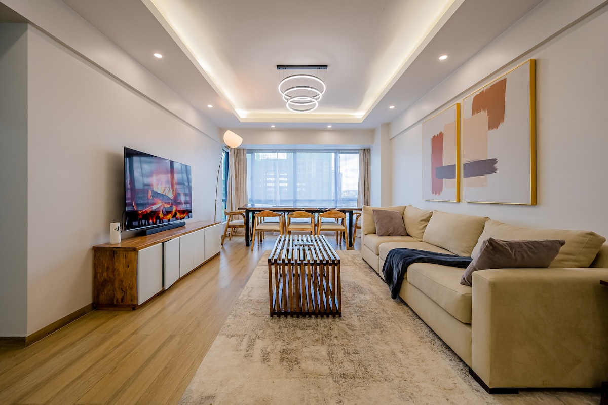 Bem-vindo ao nosso elegante apartamento no alto andar em Kilimani, Nairóbi. Desfrute de belas vistas de Kilimani e em direção a Westlands a partir de um espaço confortável e cuidadosamente projetado. O apartamento fica a poucos minutos do Yaya Centre, Prestige Plaza e Carrefour na Rose Avenue, com muitos cafés e restaurantes nas proximidades, incluindo a China City, a uma curta distância a pé. Com segurança 24 horas, 7 dias por semana, acesso fácil ao Uber e conexões rápidas com o CBD e a JKIA pela via expressa, é uma base ideal para estadias de negócios ou lazer.