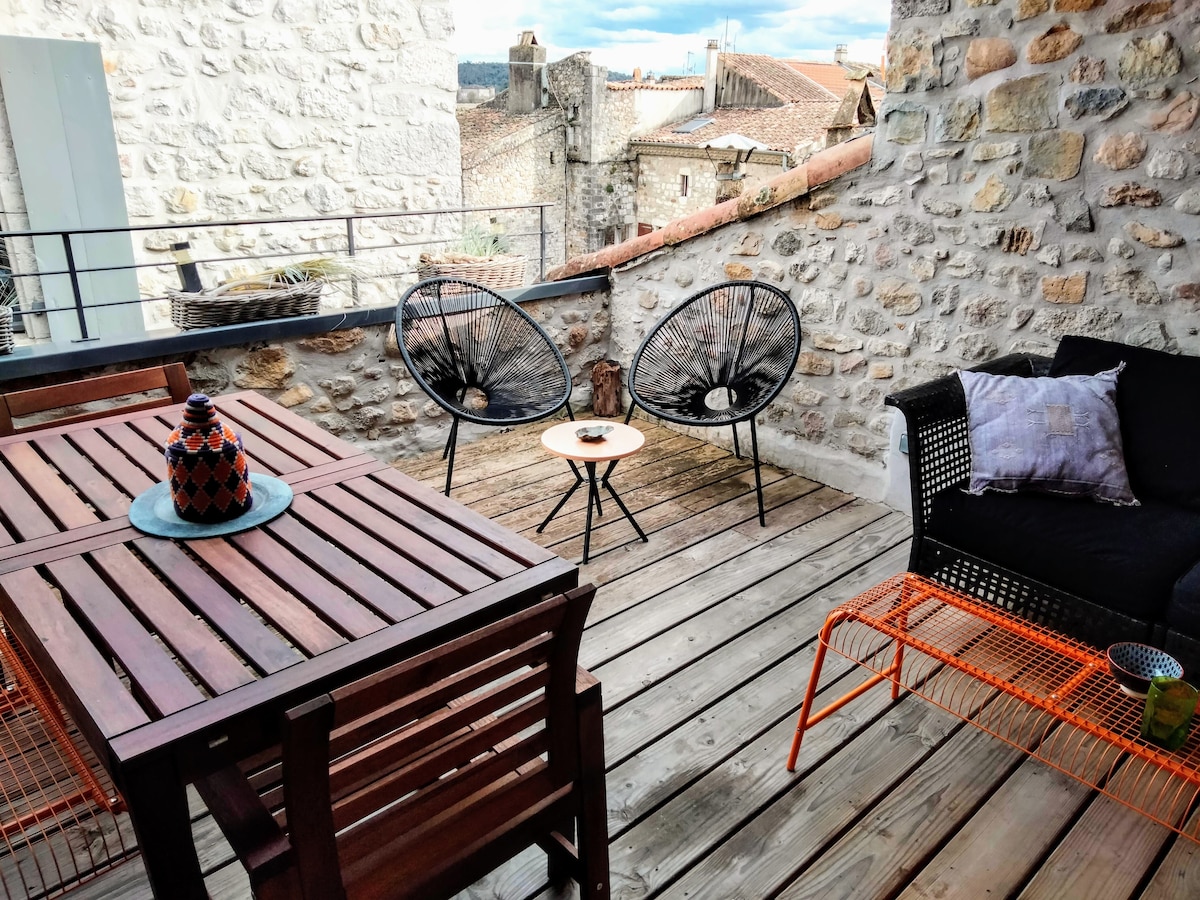 Charmosa casa de campo no coração de Ruoms com terraço