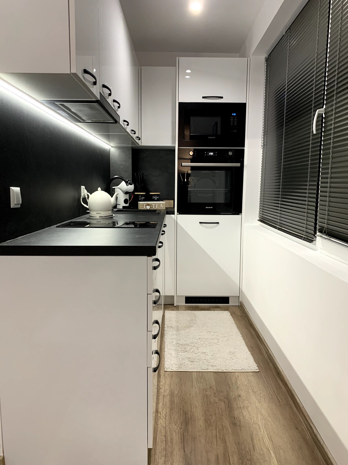 O apartamento está localizado na parte central da cidade, a 5 minutos a pé do centro novo e antigo, onde estão localizados a maioria das lojas, os clubes noturnos e restaurantes mais famosos e populares. O apartamento tem lugar de estacionamento próprio. Há um playground renovado para as crianças em frente ao bloco. O apartamento tem dois quartos separados com camas de casal, cozinha com área de jantar, terraço envidraçado e banheiro e banheiro separados. A cozinha está equipada com tudo o que é necessário.