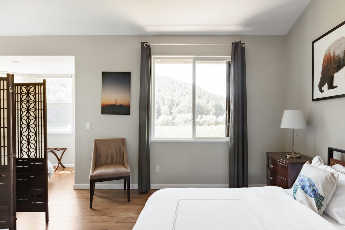 O BNB local da Amy está aninhado entre enormes abetos em um bairro tranquilo a uma curta caminhada do centro de Sebastopol. Esta joia contemporânea ensolarada se concentra em nosso compromisso com alimentos, vinhos e artesanato locais e de origem sustentável. Com uma cozinha completa, você pode desfrutar do conforto de uma refeição preparada “em casa” no mercado de agricultores locais ou caminhar até excelentes restaurantes locais. Compartilharemos mapas para o nosso local de natação favorito no rio Russian ou para praias oceânicas, ou apresentá-lo a excelentes vinicultores locais.