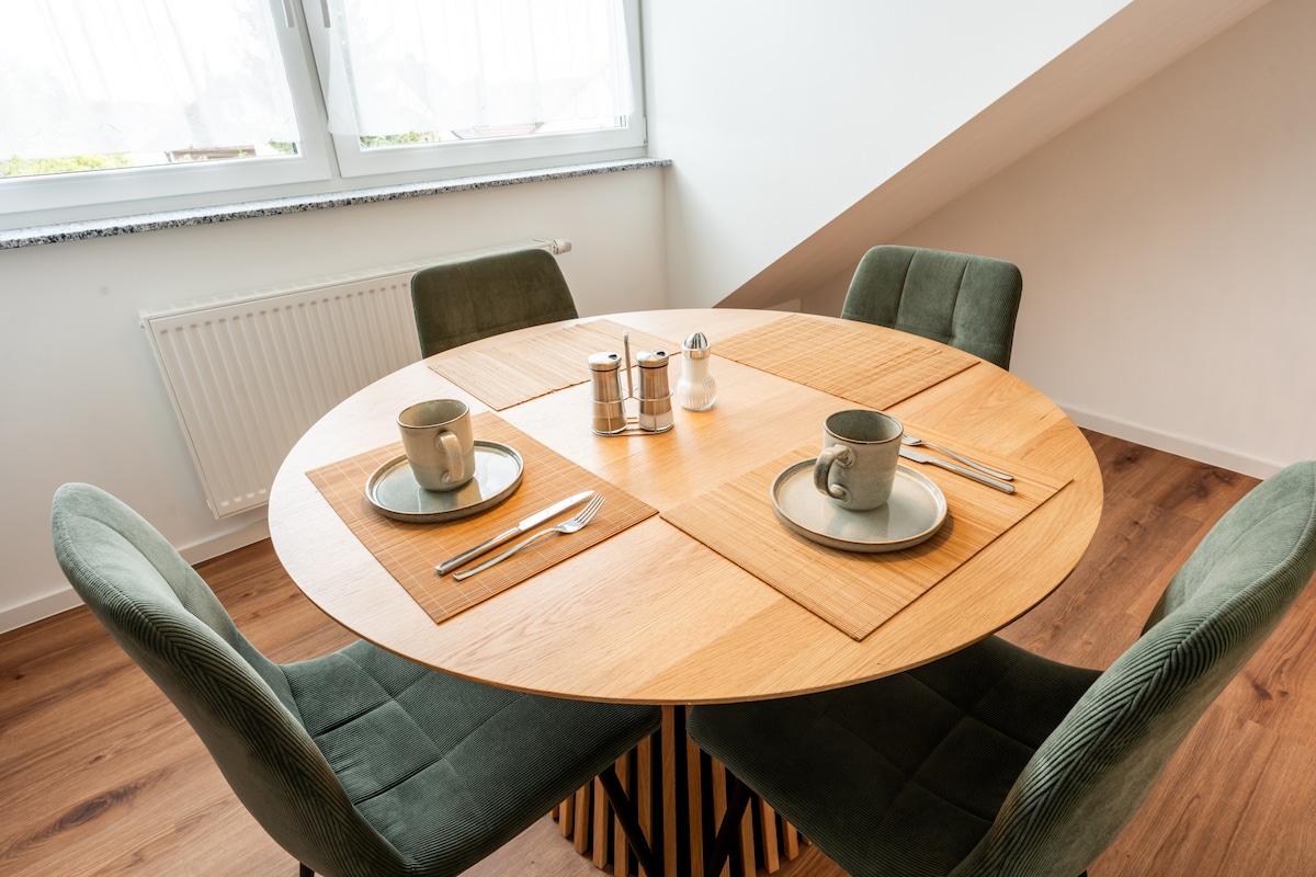 Bem-vindo ao seu retiro elegante perto do Europa Park! Este apartamento no sótão inundado de luz combina design moderno com aconchego. Perfeito para famílias, casais ou amigos – aqui você encontrará paz e conforto. • Conceito de vida aberto e iluminado com o charme do telhado inclinado • Arranjos de dormir confortáveis para até 4 pessoas • Cozinha totalmente equipada • Wi-Fi e Smart TV • Espaço de estacionamento incluso • Estação de carregamento elétrico (a um custo extra) • Apenas 10 - 15 minutos a pé do Europa-Park & Rulantica