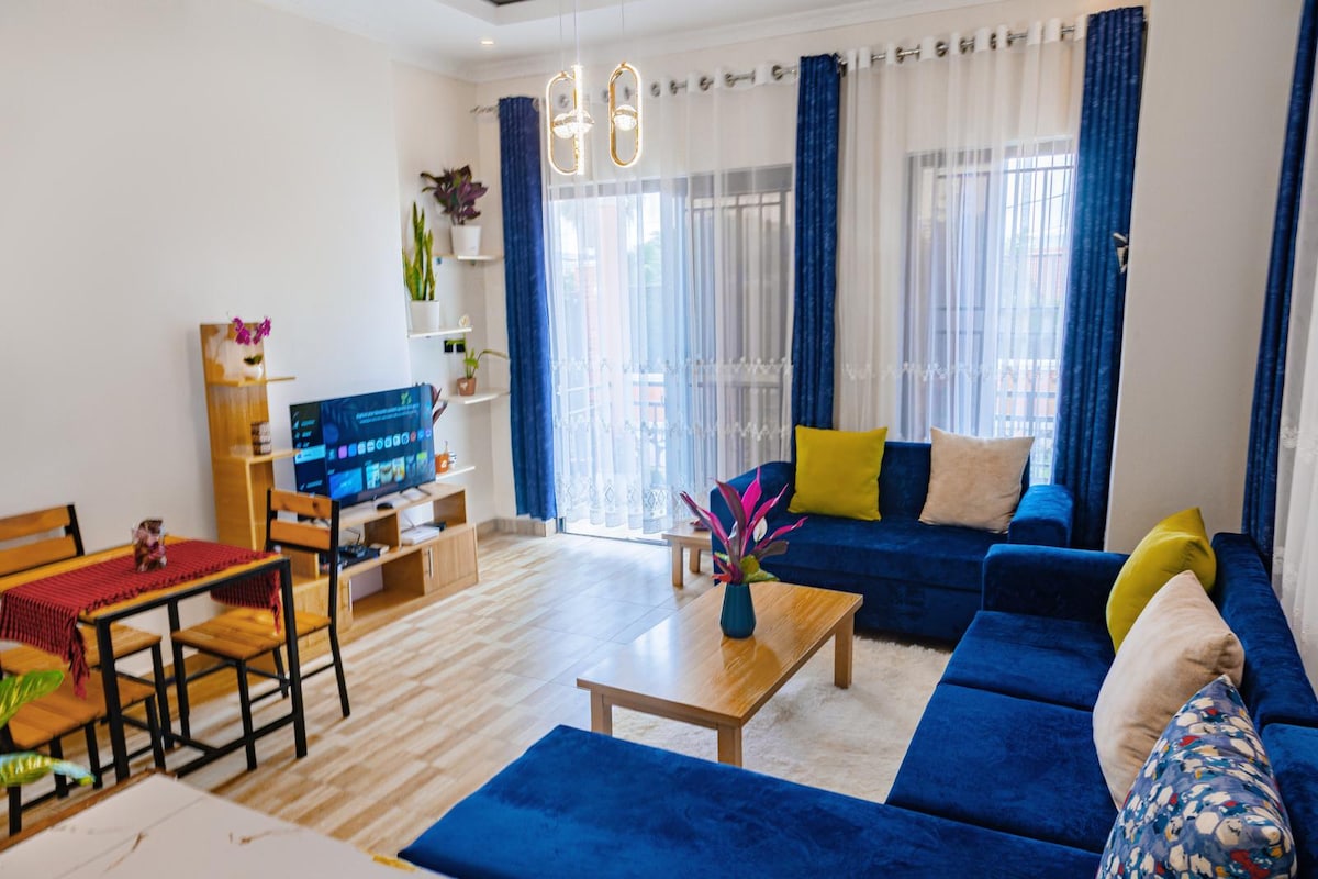Requintada vila inteligente tipo cobertura de 4 quartos + 1 em Kibagabaga, com terraço privativo e vistas de 360 graus. Perfeito para famílias, grupos ou viajantes de negócios que buscam conforto e privacidade. • 4 minutos a pé da Green Hills Academy • A 5 minutos de carro do Kigali Golf Resort & Villas • A 12 minutos de carro do Centro de Convenções de Kigali • A 16 minutos de carro do Aeroporto Internacional de Kigali