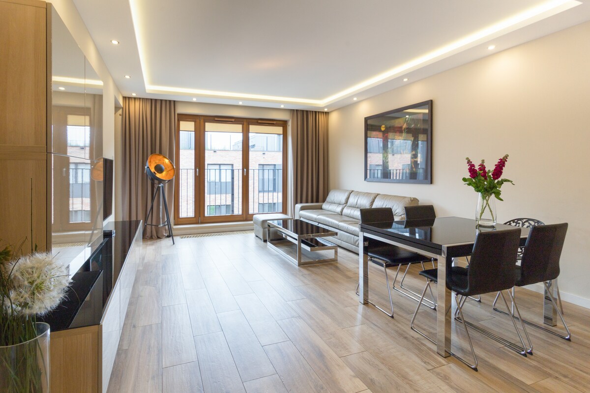 Residência Libra, apartamento de designer de 55m² em localização central! ☞ Walk Score 100 (Caminhe até cafés, restaurantes, compras, etc.) ☞ Cozinha totalmente equipada + abastecida Área ☞ segura + recepção 24 horas, 7 dias por semana Vagas de estacionamento ☞ público perto do edifício (pagas) ☞ Smart TVs com Netflix Máquina de lavar e secar roupa ☞ no local Wi-Fi ☞ de 400 Mbps 4 mins → Main Market Square 10 minutos → Kazimierz