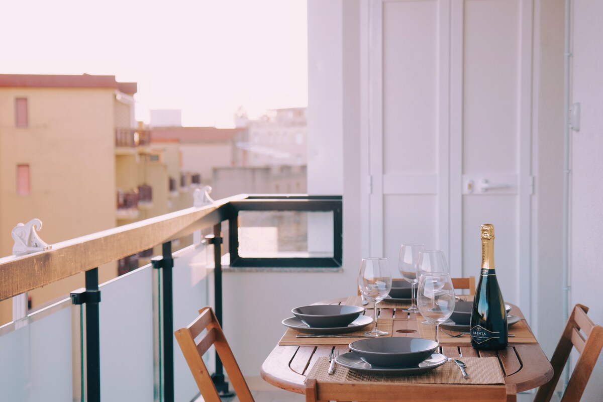 Terraço em frente ao mar Alghero, relaxamento Wifi AC garagem