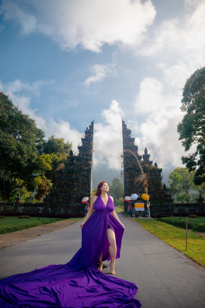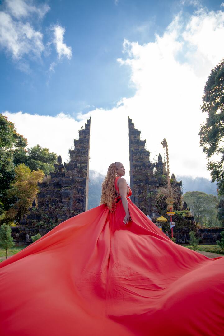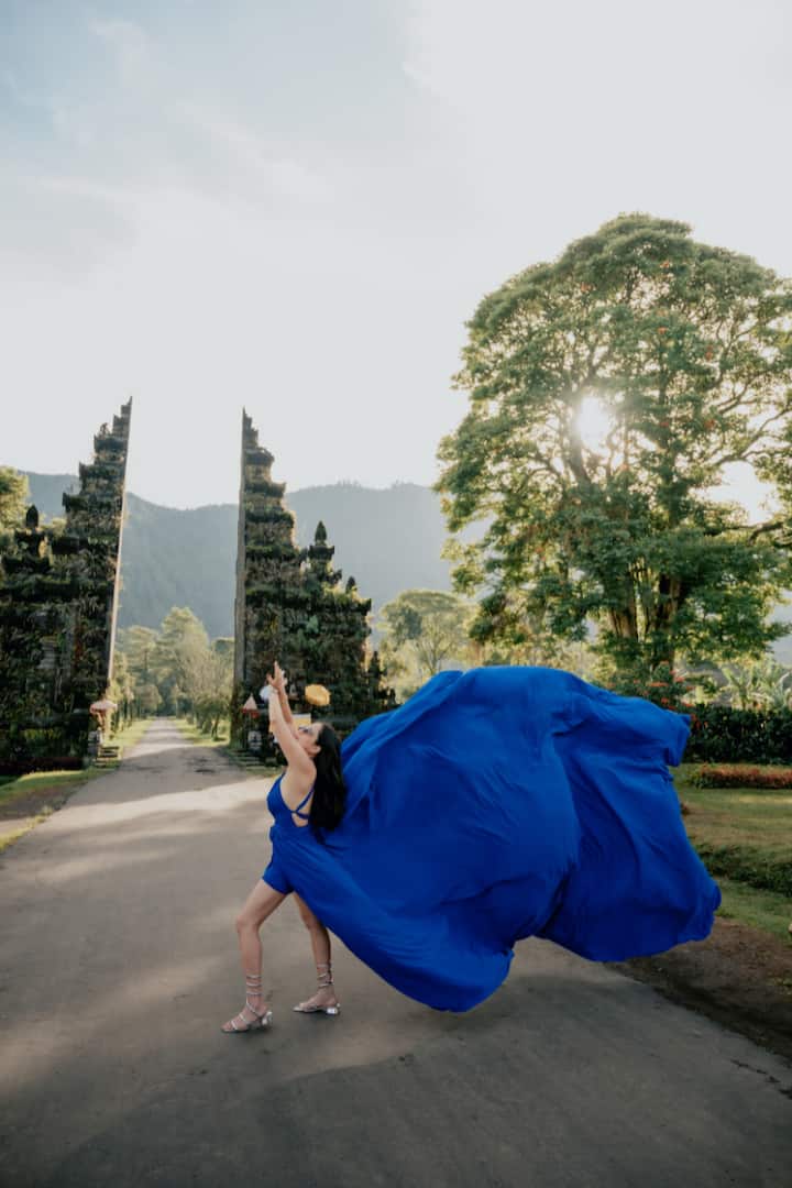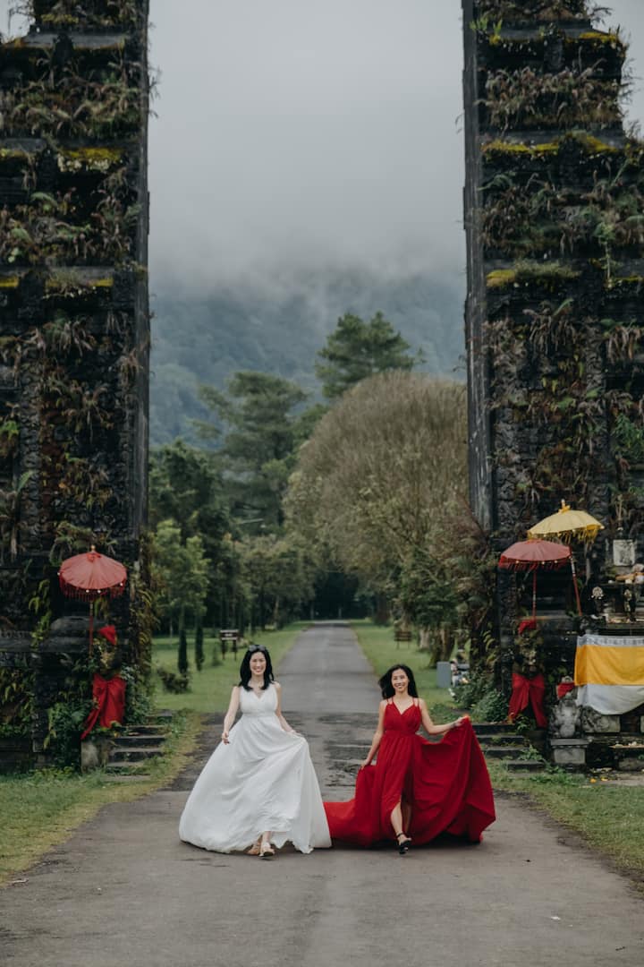Sessão de fotos VIP com vestidos esvoaçantes em Ubud, Bali