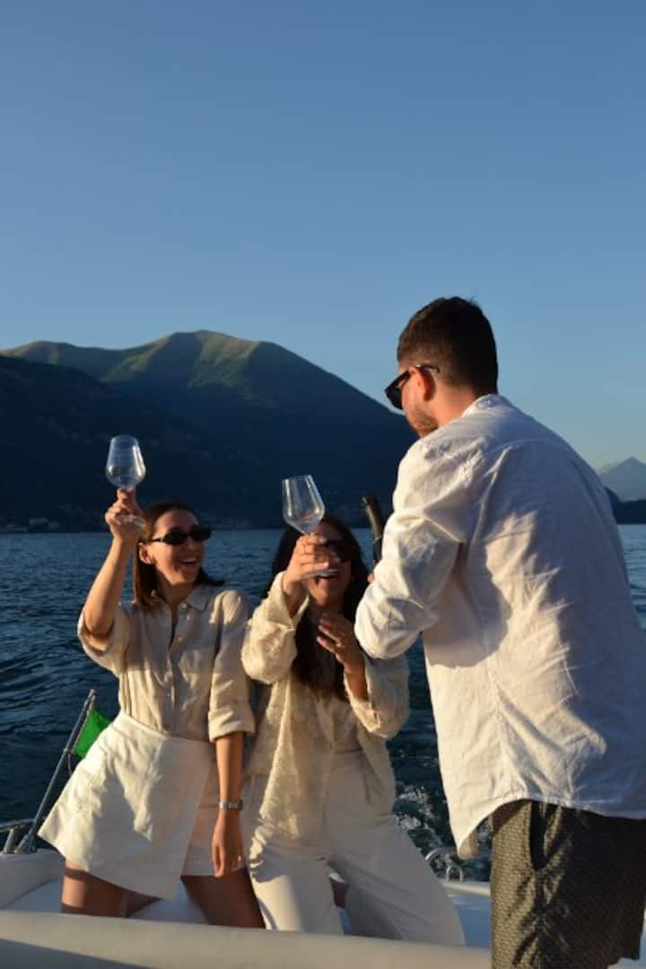 Passeio de barco compartilhado no Lago de Como com vinho e nado