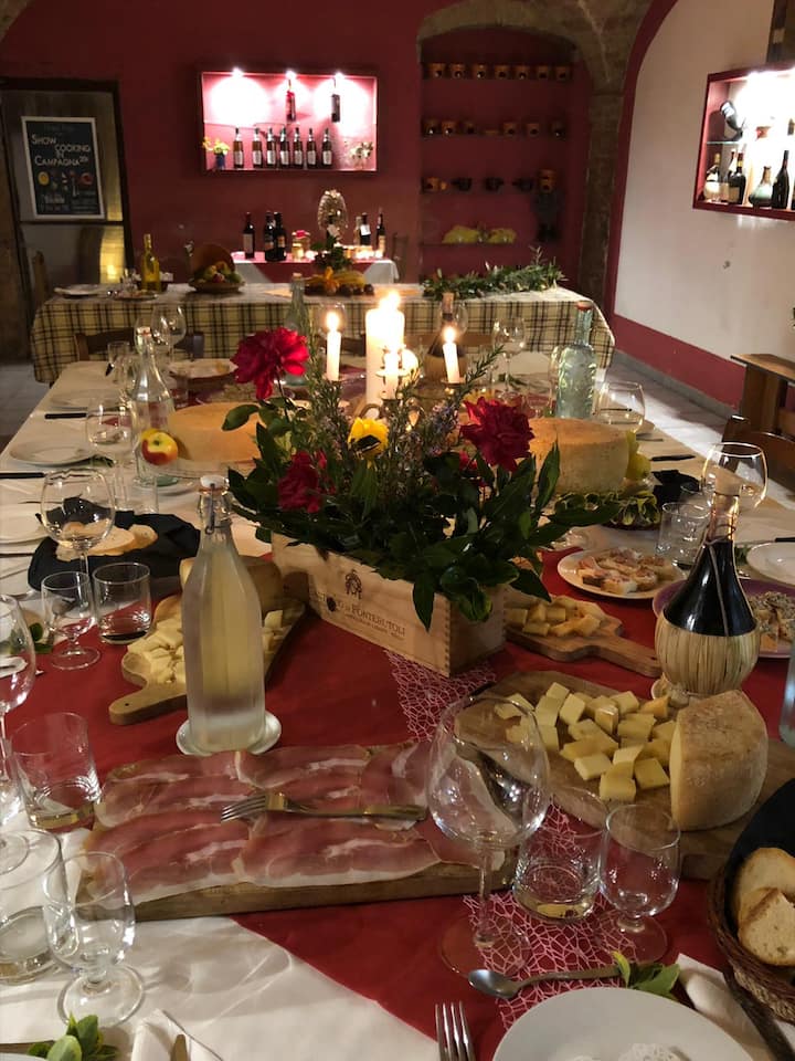 Fuga toscana com vinho, queijos e vista para os vinhedos