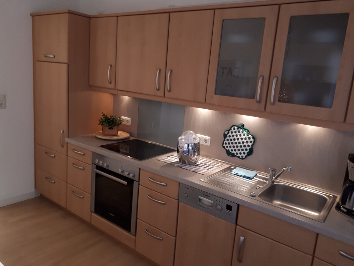 Nosso apartamento trancado de 2 quartos está localizado em um prédio de apartamentos bem cuidado no final de uma rua de jogos em uma área muito tranquila. A estação de trem fica a 3,5 km, a universidade a apenas 1,8 km. O apartamento tem uma grande varanda e uma cozinha totalmente equipada. Chegue e sinta-se bem. Aguardamos sua visita.