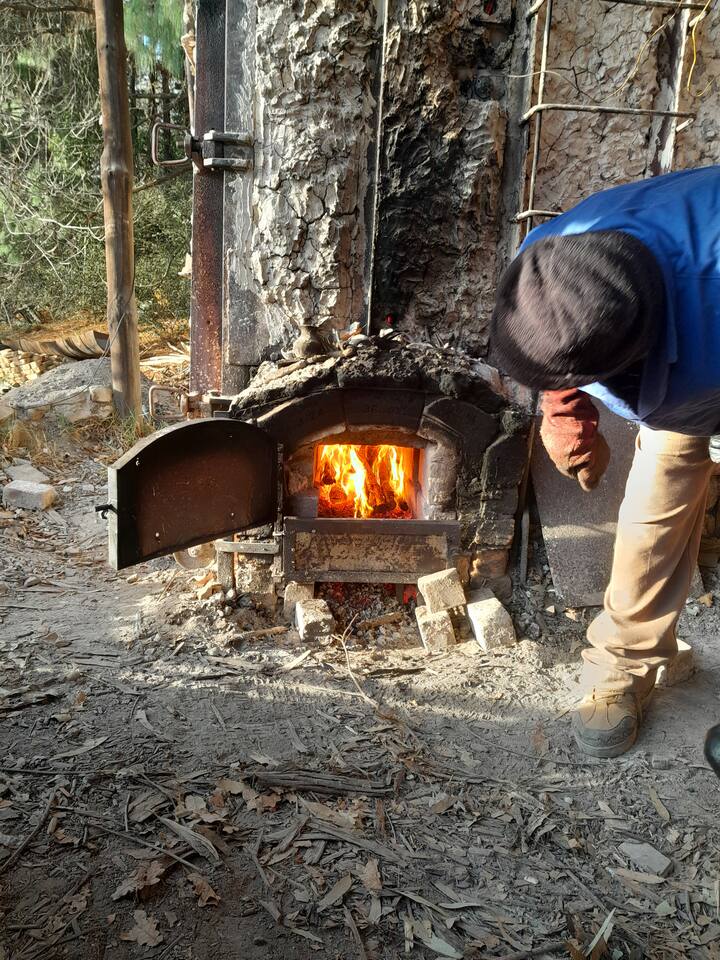 Fie o mohair em uma pequena fazenda florestal na natureza