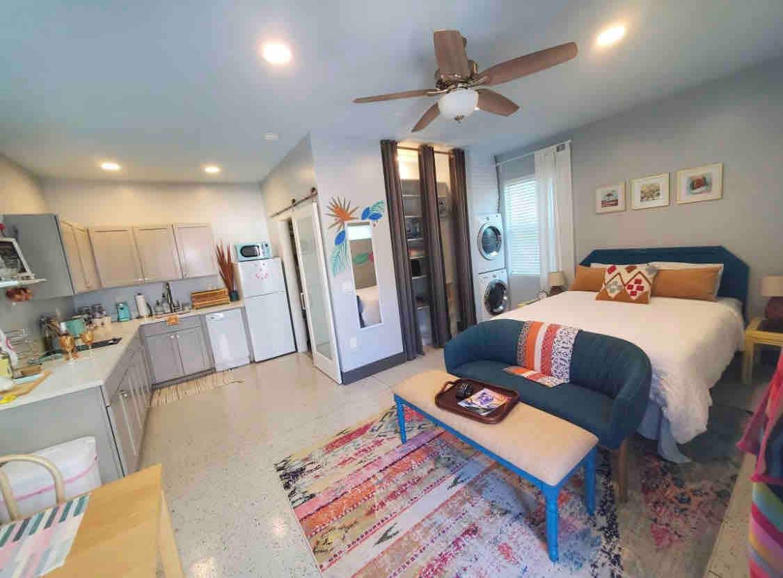 Estúdio recém-construído -- espaço pequeno, design inteligente. Um espaço de estúdio intimista destinado a um estilo de vida minimalista completo com comodidades completas. Compacto, mas confortável, é o lugar perfeito para um sono reparador entre suas aventuras diurnas. Viaje com pouca bagagem, viva com leveza. 3 quarteirões da Stetson Law School 3-4 quarteirões da Pinellas Trail ~ 1,5 milhas até Gulfport 's Beach Blvd 5 km até a premiada praia de St. Pete 6 km até a Ilha do Tesouro premiada ~ 4,5 milhas até o centro de St Pete