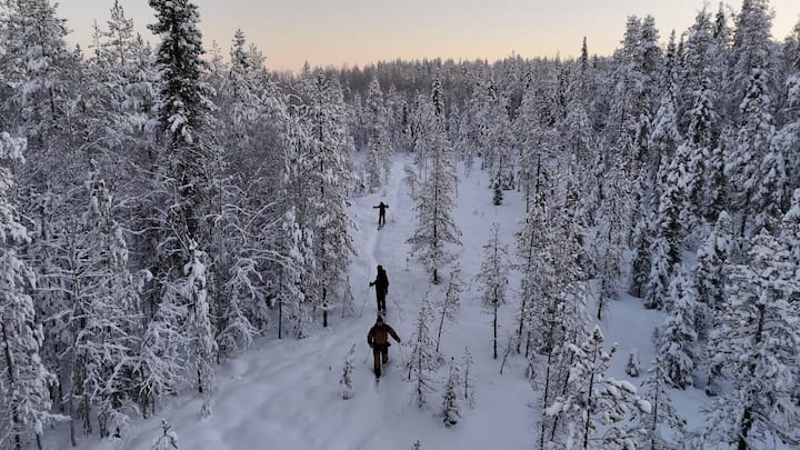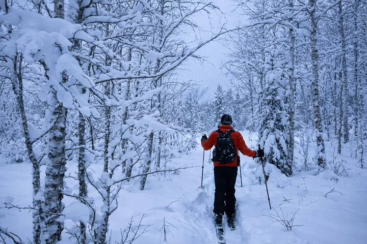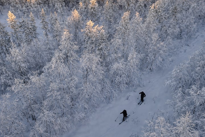 Esqui na solidão das florestas árticas