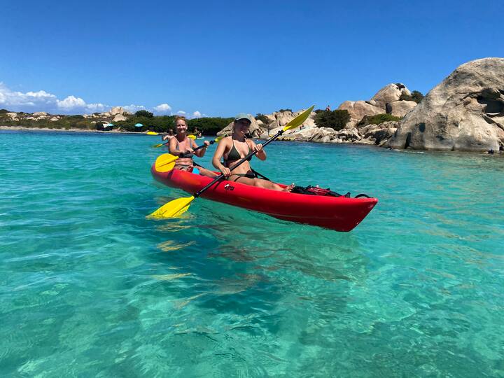 Passeio de caiaque em La Maddalena, mergulho com snorkel e aperitivo