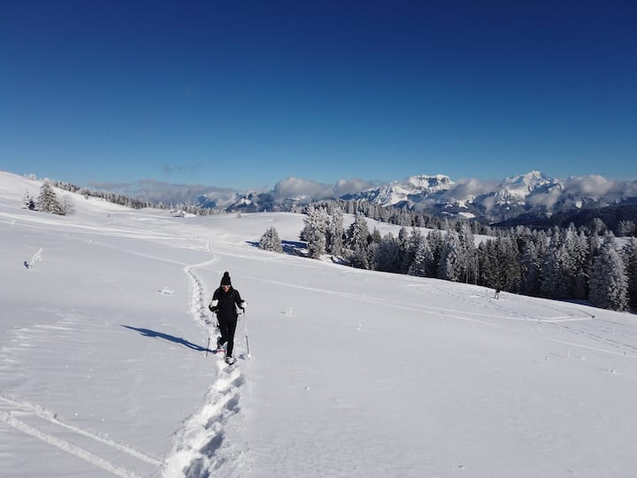 Viva a experiência de caminhada com raquetes de neve em Annecy