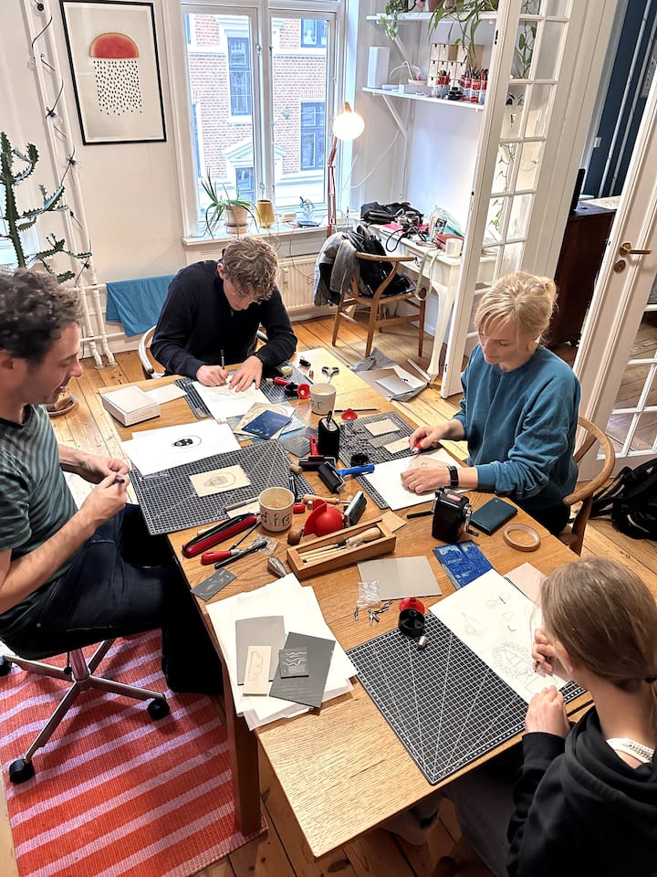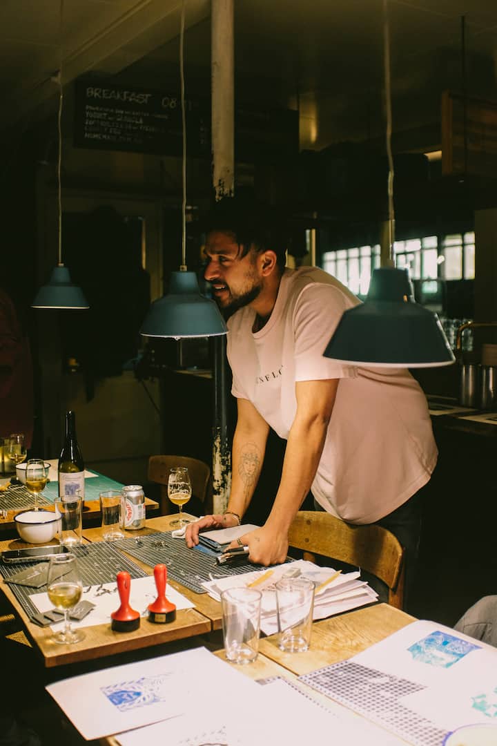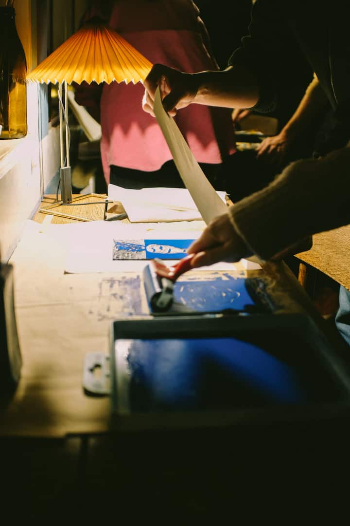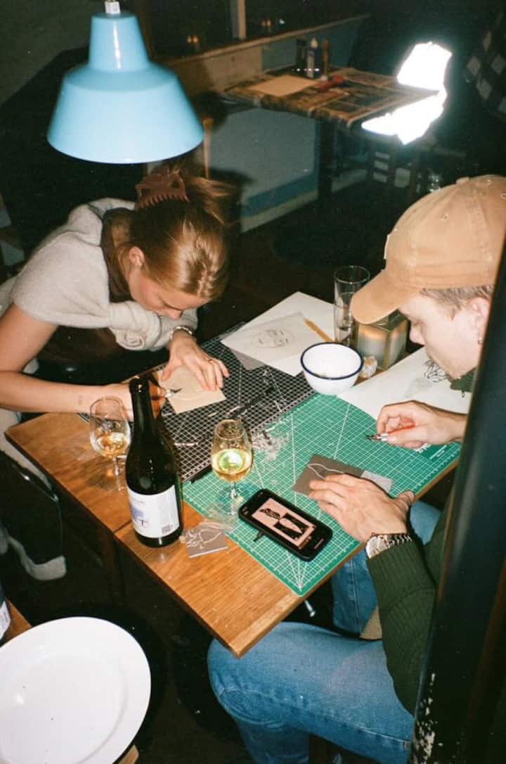 Oficina de impressão em linóleo com artista residente