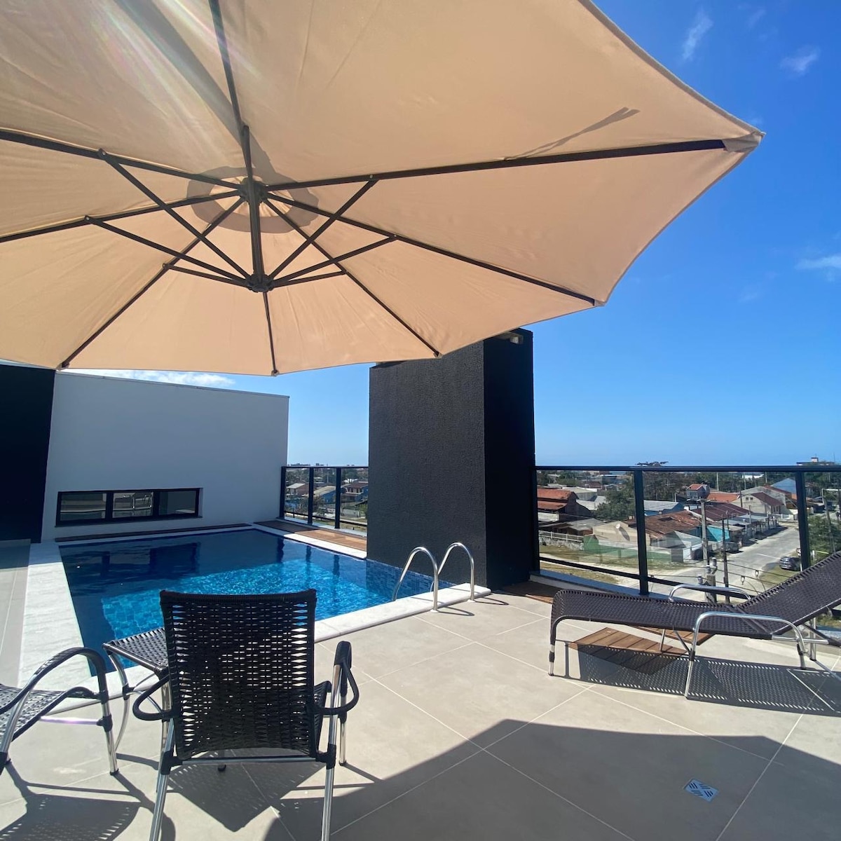 Cobertura vista mar, piscina privativa e churrasq.