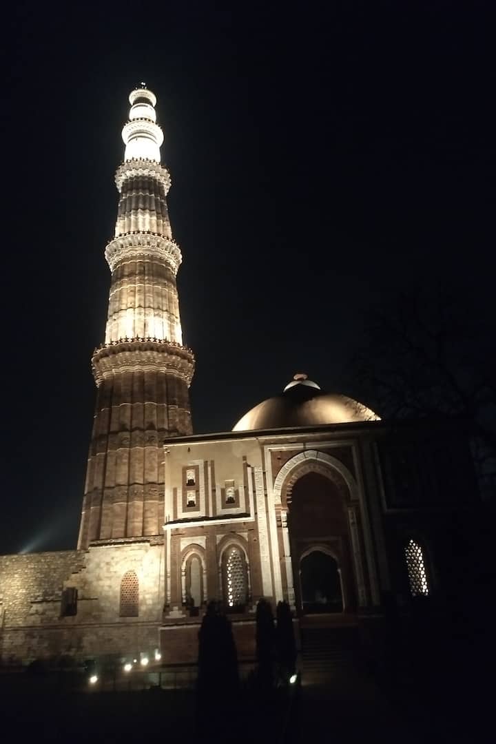 Explore o Qutub Minar em uma caminhada noturna