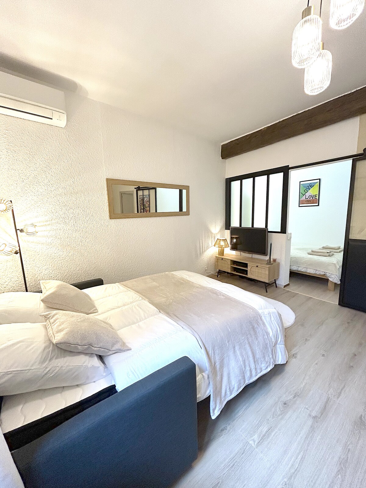 Desfrute de uma acomodação elegante e central. No coração de Nîmes, perto dos principais monumentos da cidade (arena, museu Romanité, torre do relógio, prefeitura, estação de trem,...) venha e fique no 'Bohème'. Em uma rua tranquila, perto da esplanada e da arena, você terá um apartamento duplex espaçoso, moderno e renovado de 60m², permitindo que você aproveite ao máximo sua visita à cidade e seus arredores.
