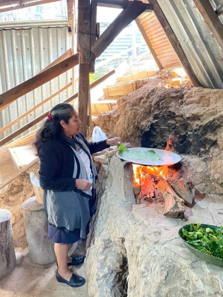 Aula de culinária pré-hispânica com ingredientes silvestres