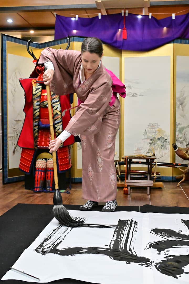 Aprenda a caligrafia zen em quimono no Castelo de Osaka