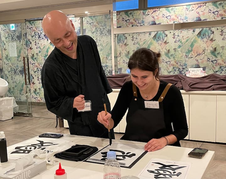 Aprenda a caligrafia zen em quimono no Castelo de Osaka