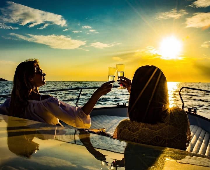 Aperitivo ao pôr do sol no mar