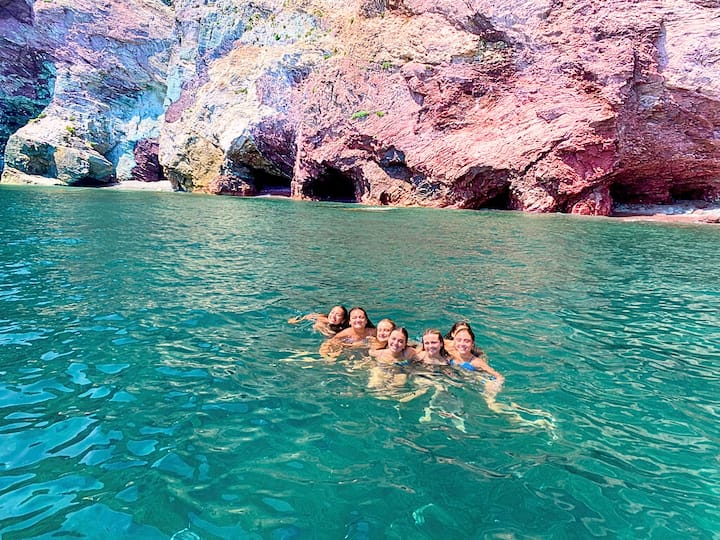 Costa dos piratas e cavernas com Jenny no barco rosa