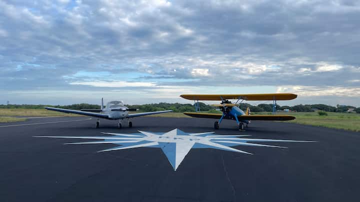 Sobrevoe o sul do Texas em um biplano Stearman de 1943