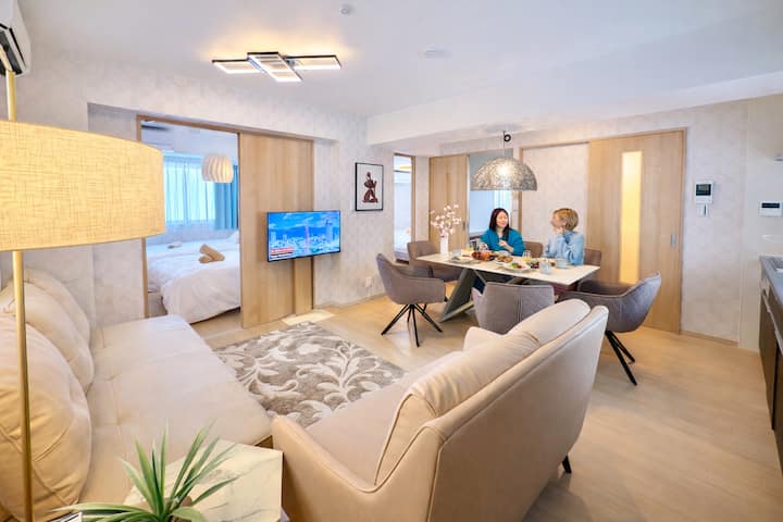 Rakuso - Estação de Flores 02, quarto de luxo para 4 pessoas em Osaka, 1 minuto a pé do supermercado da estação, 3 minutos de Namba, trem de Shinsaibashi, direto para o aeroporto de Kansai