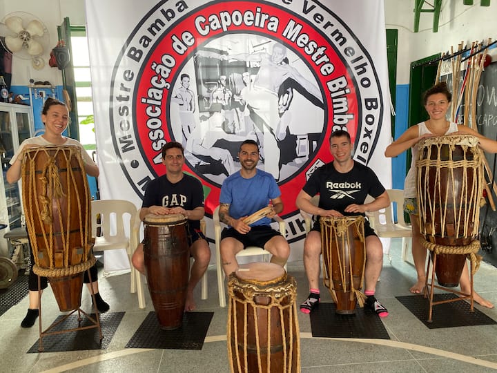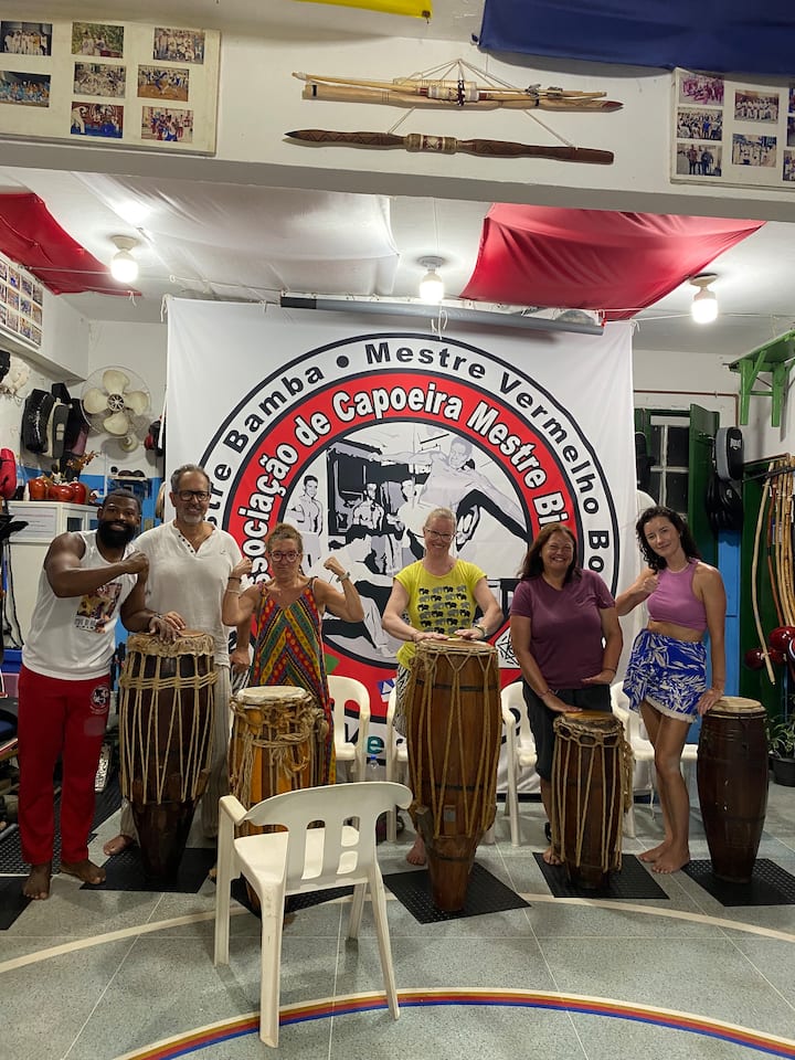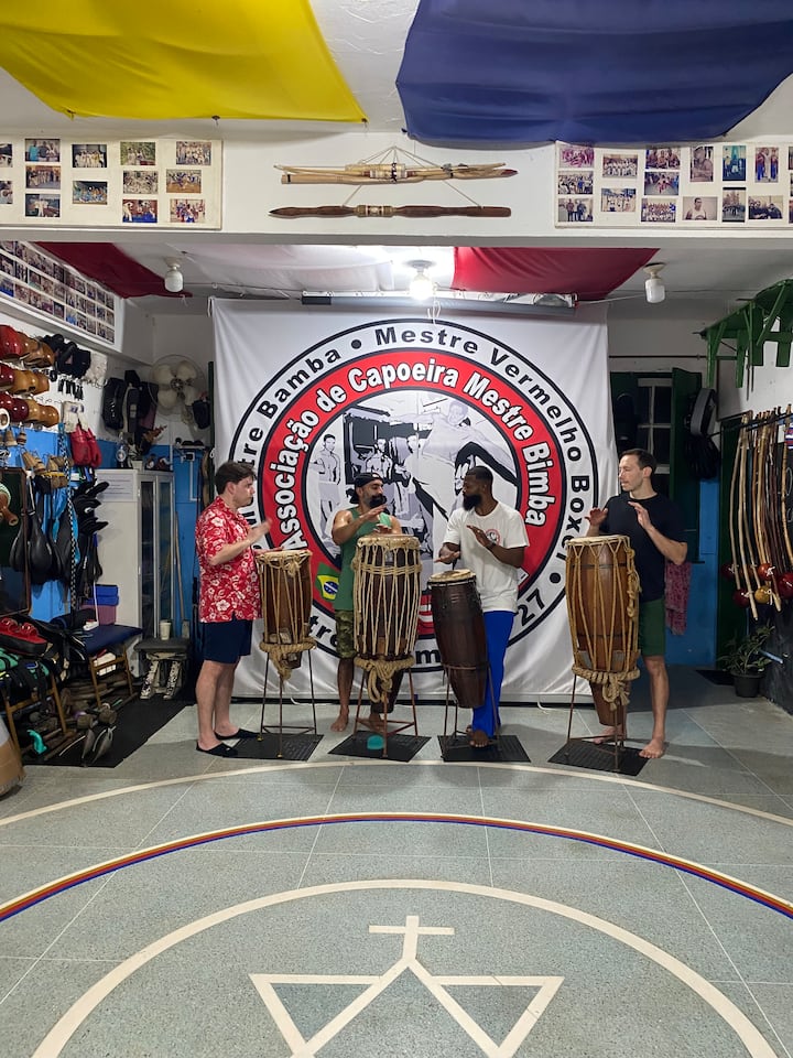 Noite cultural de capoeira, samba e percussão