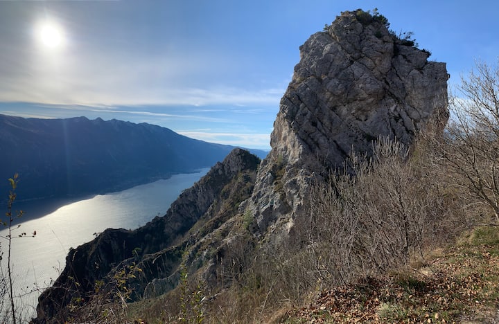 Trilha pelas cordilheiras de Pregasina acima do Lago de Garda