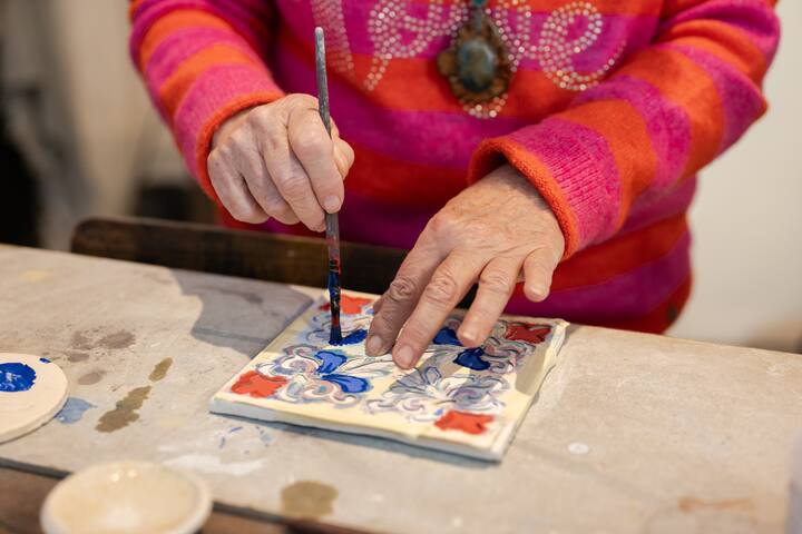 Decore e esmalte um azulejo de cerâmica maltês