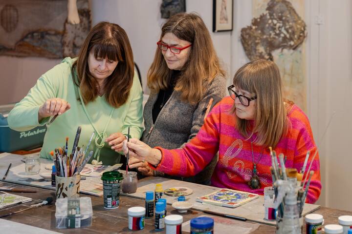 Oficina de pintura de azulejo maltês com morador local