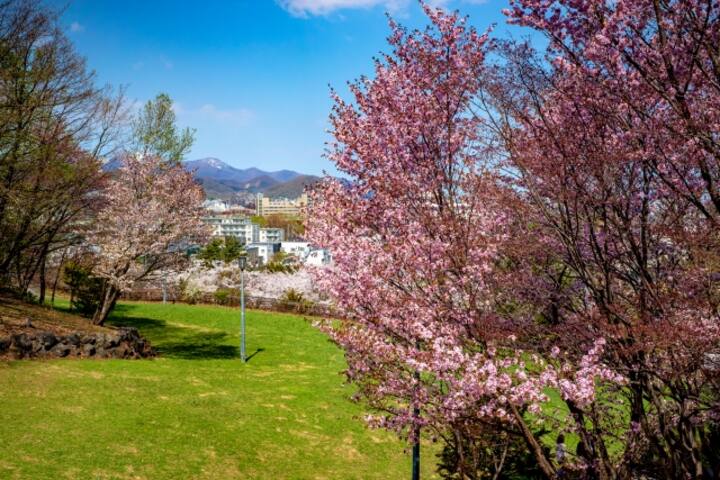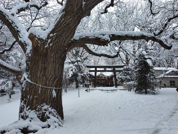 Passeio com o embaixador de turismo de Sapporo: o ponto secreto de cerejeiras em montanha Tenjin, arte e experiência em um santuário