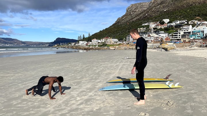 Aulas de surfe para iniciantes com profissional local em Muizenberg