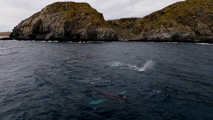 Trilha de observação de baleias com vistas de drone em Todos Santos
