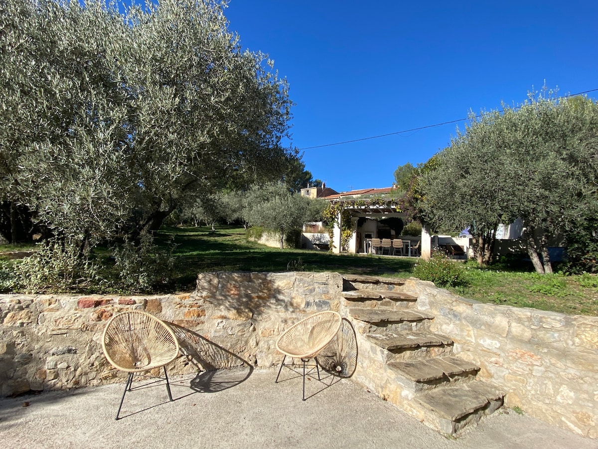 Maison située sur notre propriété de 6000m2 sur les hauteurs de Trets. Nous habitons sur place mais la terrasse et une partie du jardin est privative et sans vis-à-vis. Environnement très calme et dans la verdure. Dans le jardin, il y a en accès partagé terrains de sport et jeux (pétanque, basket, foot, tyrolienne 25m, trampoline,balançoire, château, crossfit) Wifi par la fibre. Accès à la piscine chauffée sur réservation (50€/demi-journée : 8h/12h ou 14h/18h) Fête interdite
