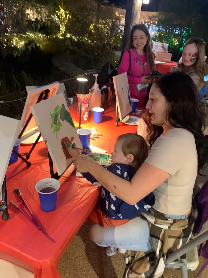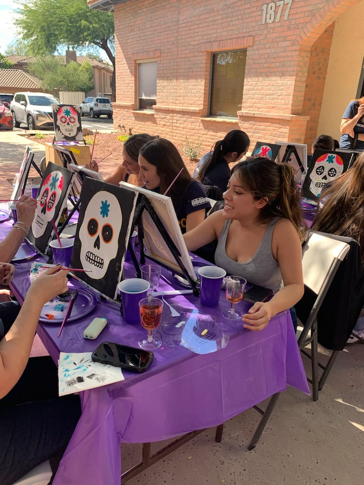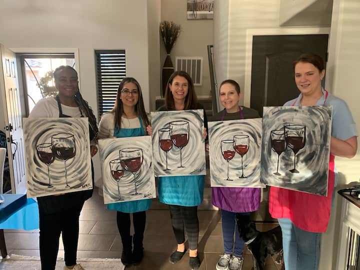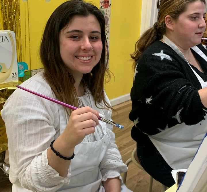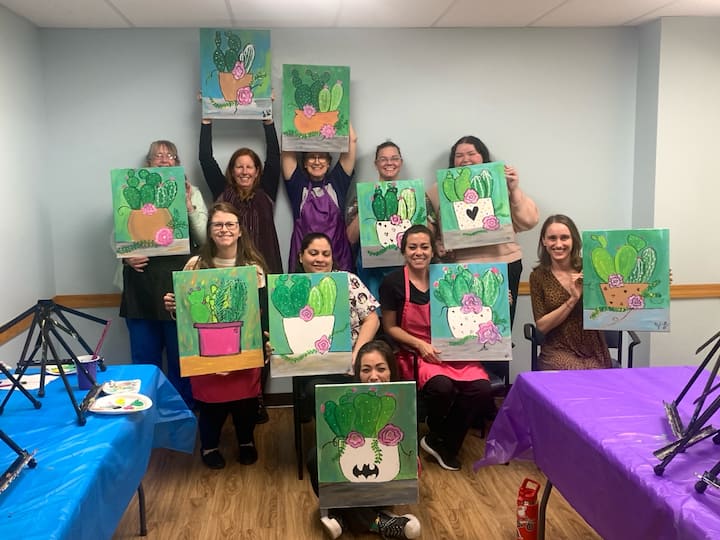Festa de pintura em tela guiada com artista local