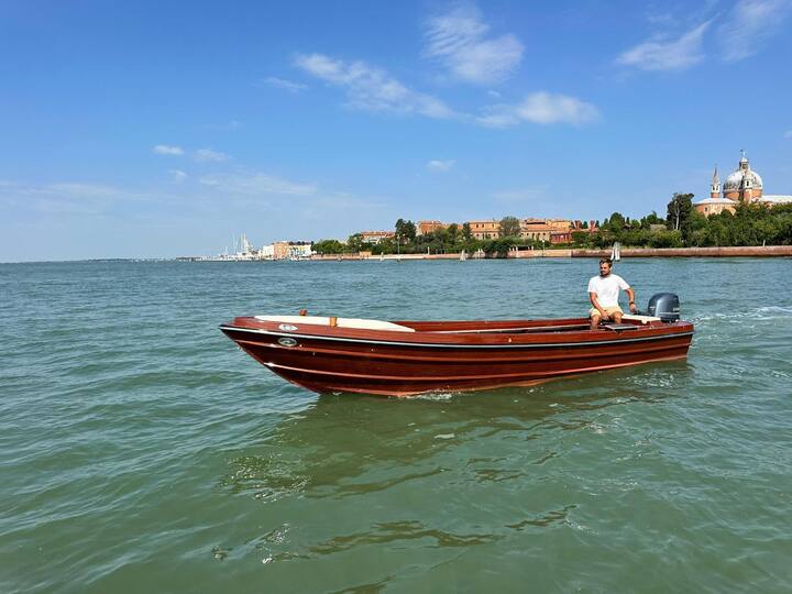 Passeio de barco ao pôr do sol em uma lagoa veneziana