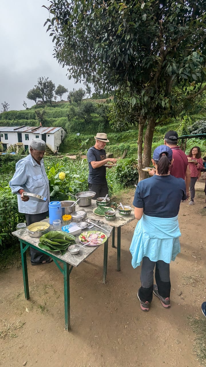 Trilha e banquete em uma vila do Himalaia