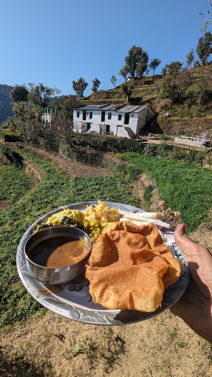 Saboreie um almoço ayurvédico em uma fazenda