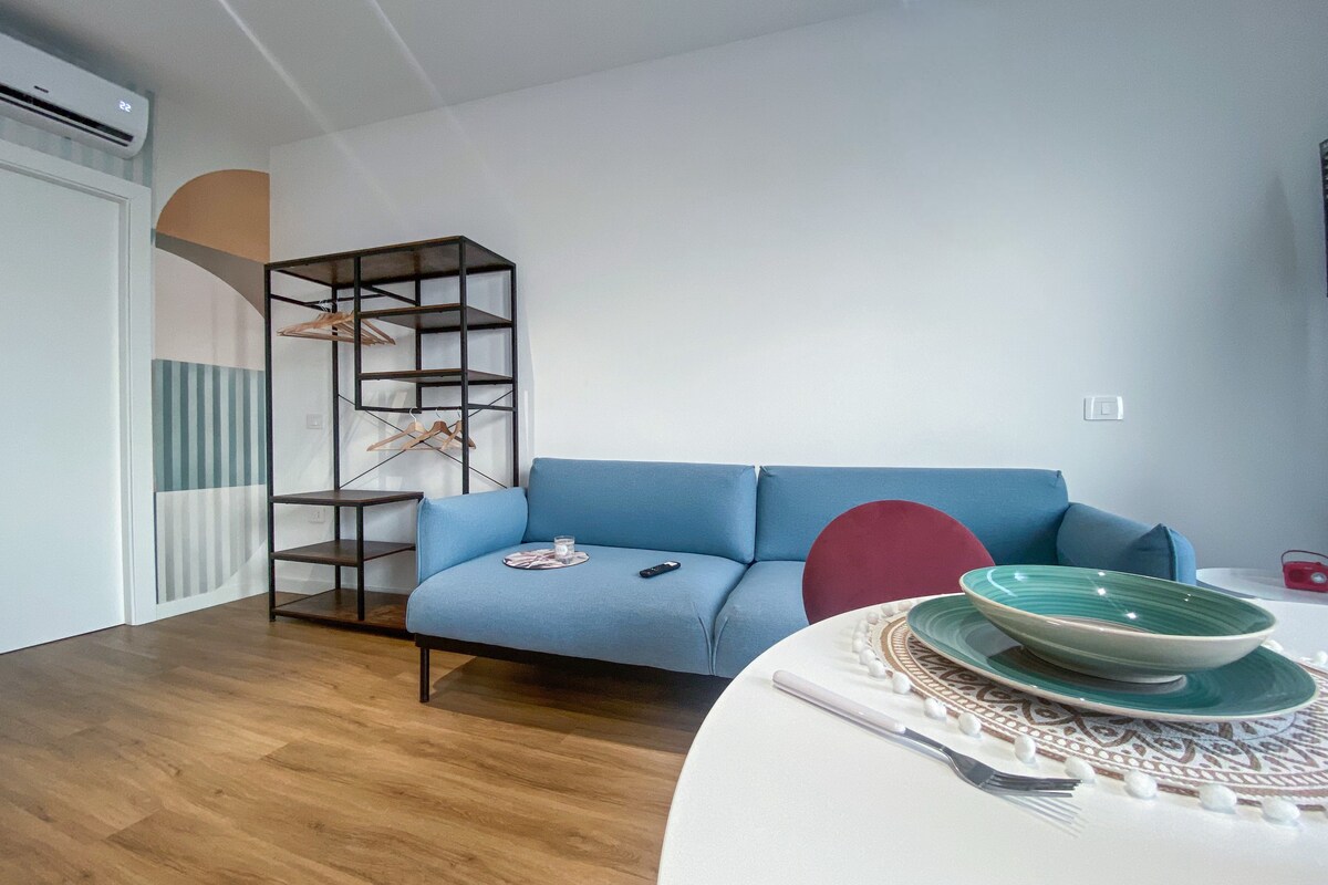 Bilocale composto da : Ingresso soggiorno con un divano letto matrimoniale , un comodo tavolo con 4 sedie , una cucina moderna con piano induzione ,Bollitore ,Macchinetta del caffè , Microonde,Toastapane,Frigorifero e un Freezer. Camera da letto con un letto Matrimoniale alla francese e armadio con ante scorrevoli. Nel bagno è presente una doccia , sanitari sospesi, un Phon e una Lavasciuga. Un patio con giardino dove poter mangiare. In tutta la casa sono presenti le Zanzariere