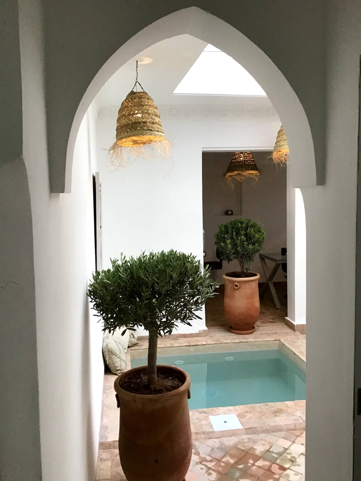 Maison Plénitude - Riad de Luxe Bienvenue à Maison Plénitude, un magnifique riad au cœur de la médina de Marrakech, à 10 minutes de la place Jamaâ El Fna. Le Riad dispose de 3 chambres élégantes, chacune avec salle de bain privative. Profitez de la piscine sur la terrasse avec vue sur la Koutoubia. La verrière lumineuse ajoute de l’élégance. Le séjour inclut ménage quotidien et petit déjeuner. Mery, notre gouvernante, prépare de délicieux plats marocains. Réservez pour une expérience unique!