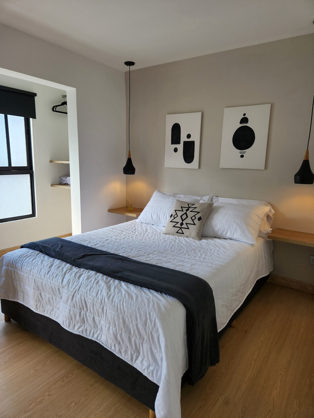 Apartamento moderno y acogedor, ubicado estratégicamente cerca de la estación del metro, vías principales y un amplia oferta comercial y gastronómica. Diseñado para brindar una experiencia cómoda y autentica, con una cuidada decoración artesanal que conecta al huésped con la riqueza cultural Colombiana. Ideal para estancias cortas o largas, con todos los servicios necesarios para una estadía confortable.
