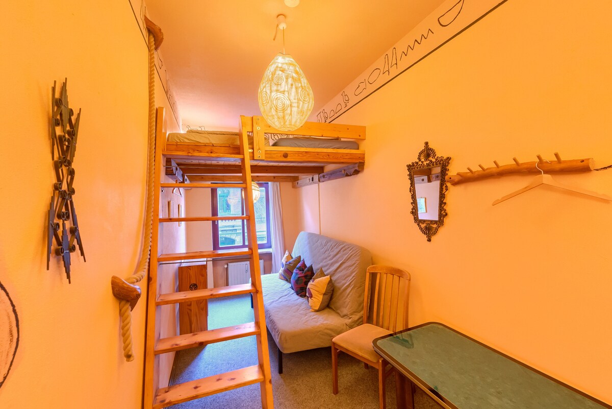 Nosso dormitoriy de 7 camas contém 1 cama de solteiro e 3 beliches. Você pode trancar sua bagagem em nossos espaçosos armários. As fechaduras podem ser alugadas na recepção por um depósito de 5 €. Lâmpadas de leitura e tomadas para cada cama, mesa pequena e cadeiras no quarto. O quarto está localizado no segundo andar sem elevador. Instalações compartilhadas e salas de descanso para homens e mulheres em todos os andares.
