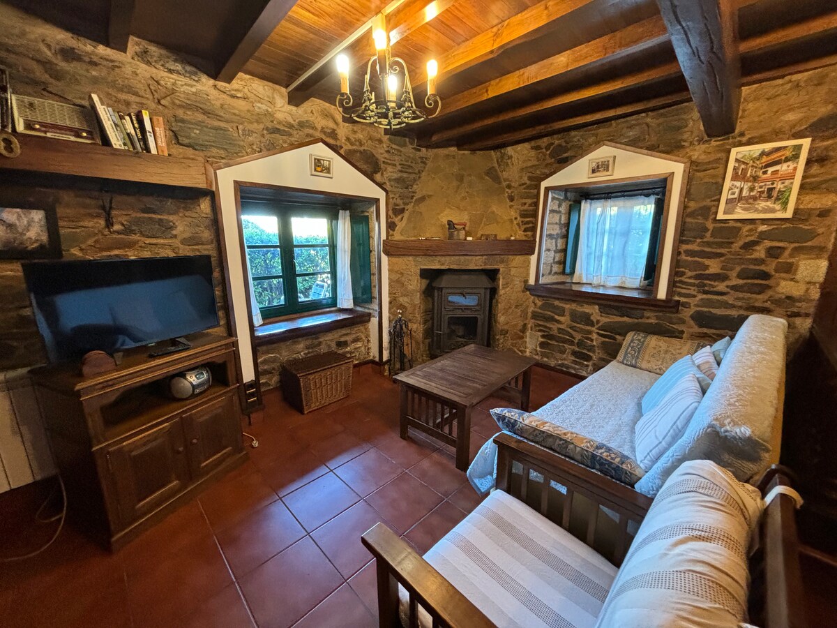 casa de pedra em uma cidade rural sem trânsito ou multidões. Cercada por floresta com rotas e caminhadas ao longo do rio. supermercados, centro médico, bares e restaurantes a 5 minutos. A 20 minutos da capital galega; a 30 minutos da costa. Casa de pedra no campo. Sem trânsito, sem multidões. Perto de comércios, lojas, restaurantes e assistência médica. desfrute de explorar a floresta em uma caminhada relaxante ao lado do rio.