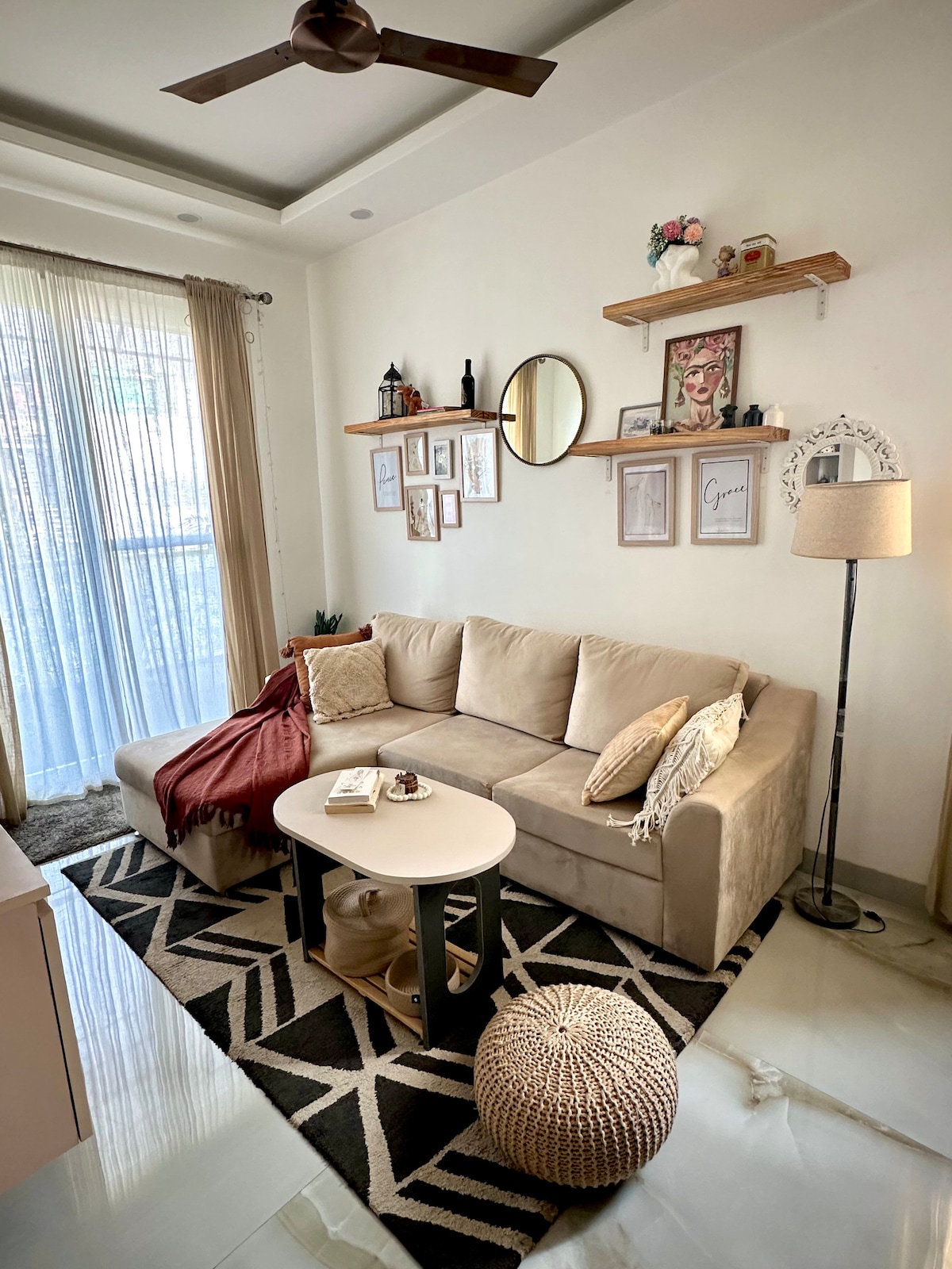 Bem-vindo à nossa casa, eu e Aditya, meu marido, somos anfitriões experientes com mais de 1000 avaliações em nossas costas - Este novo espaço que projetamos em 2024 com sua própria entrada privativa localizada na parte de trás da casa, projetado para viajantes e pessoas de negócios que estão procurando ficar entre 3 a 10 dias em Delhi, este pequeno espaço lhe dá muito mais do que você barganhou. Tem uma mesa de trabalho, uma cama super confortável e uma área aberta + janela grande para luz, sua própria entrada e sua própria varanda
